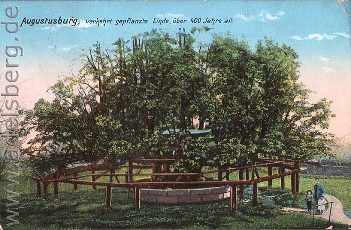 Augustusburg, verkehrt gepflanzte Linde, über 400 jahre alt gelaufen am 19.7.1921 nach Wolkenstein |