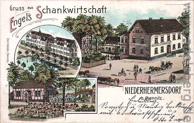Gruss aus Engel's Schankwirtschaft - Niederhermersdorf b. Chemnitz gelaufen ca. 1915 |