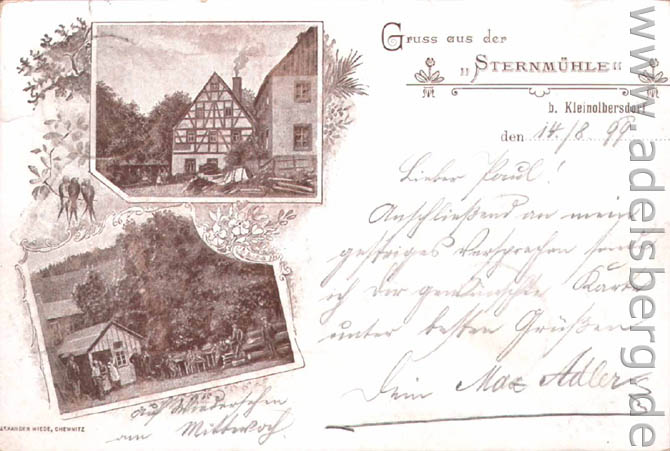 Historische Ansichten des Restaurants "Sternmühle" zu Kleinolbersdorf.